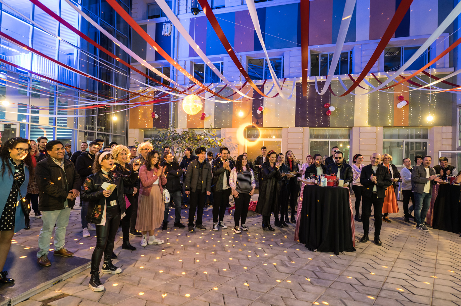 L’ambientació de l’acte era clau per al seu èxit. És per això, que vam transformar les oficines de l’empresa amb l’institut Rydell High, vam incorporar actuacions musicals, el càtering es va adaptar a la cuina americana, i un seguit de detalls més… Que van aconseguir traslladar tots els treballadors als anys cinquanta.